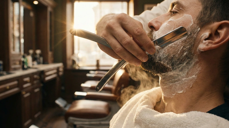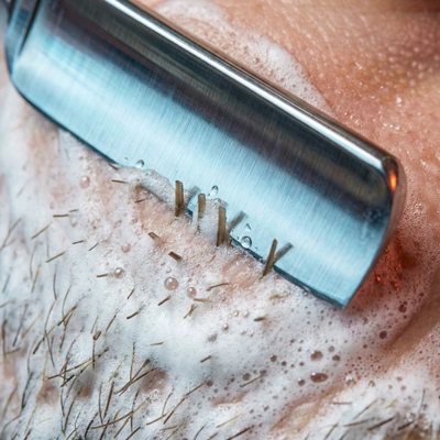 Моделирование опасной бритвой работает на уровне микрорельефа кожи. Лезвие не просто удаляет волосы, но и выполняет глубокую эксфолиацию — снимает ороговевший слой эпидермиса вместе с пушковым волосом, который часто делает контур «грязным». Распаривание перед процедурой размягчает кутикулу волоса, позволяя срезать его максимально близко к корню без натяжения кожи. В результате вы получаете идеально читаемую геометрию линий скул и шеи, которая визуально подтягивает овал лица и делает образ собранным.