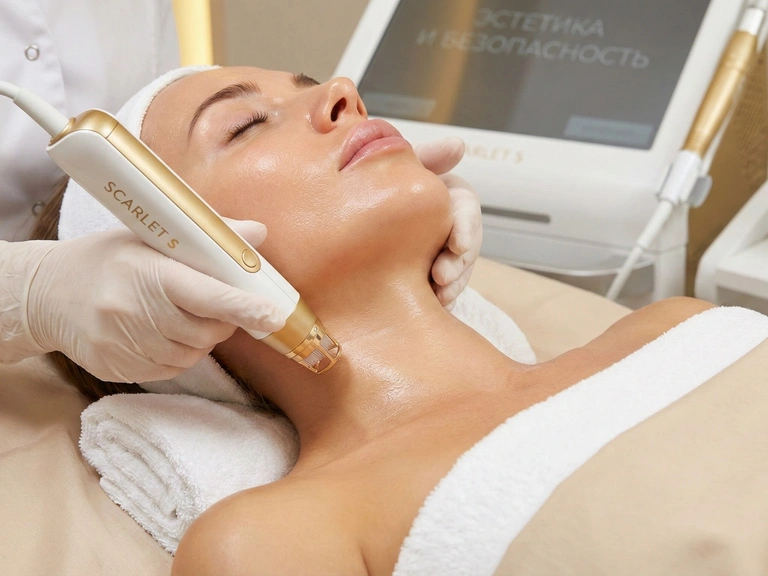 Мы используем технику Бланшинга (Blanching) с препаратом Belotero Soft — это единственный сертифицированный метод введения препарата поверхностно, прямо в морщину, без риска контурирования. А для работы с качеством кожи мы применяем RF-лифтинг Scarlet S с насадками, строго контролирующими глубину прокола до доли миллиметра. Это гарантирует безопасность для важных анатомических структур.