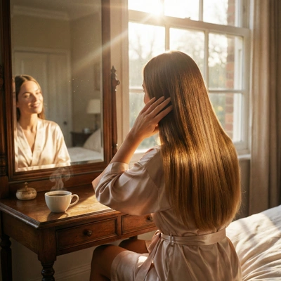 Представьте утро, в котором больше нет спешки. Вы просыпаетесь, принимаете душ и просто сушите волосы полотенцем или даете им высохнуть самостоятельно, пока варится кофе. Вместо привычного стресса и борьбы с феном вы ощущаете спокойствие. Вы касаетесь своих волос и чувствуете не липкость укладочных средств, а живую, прохладную шелковистость.
