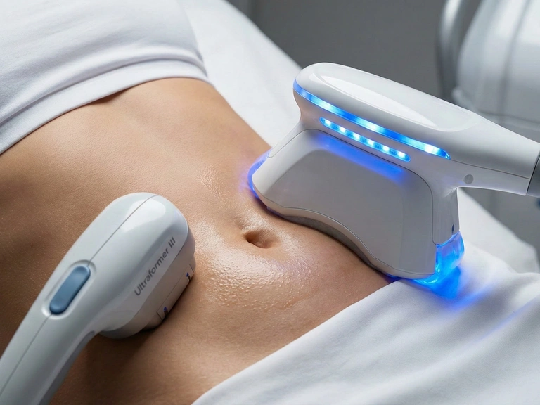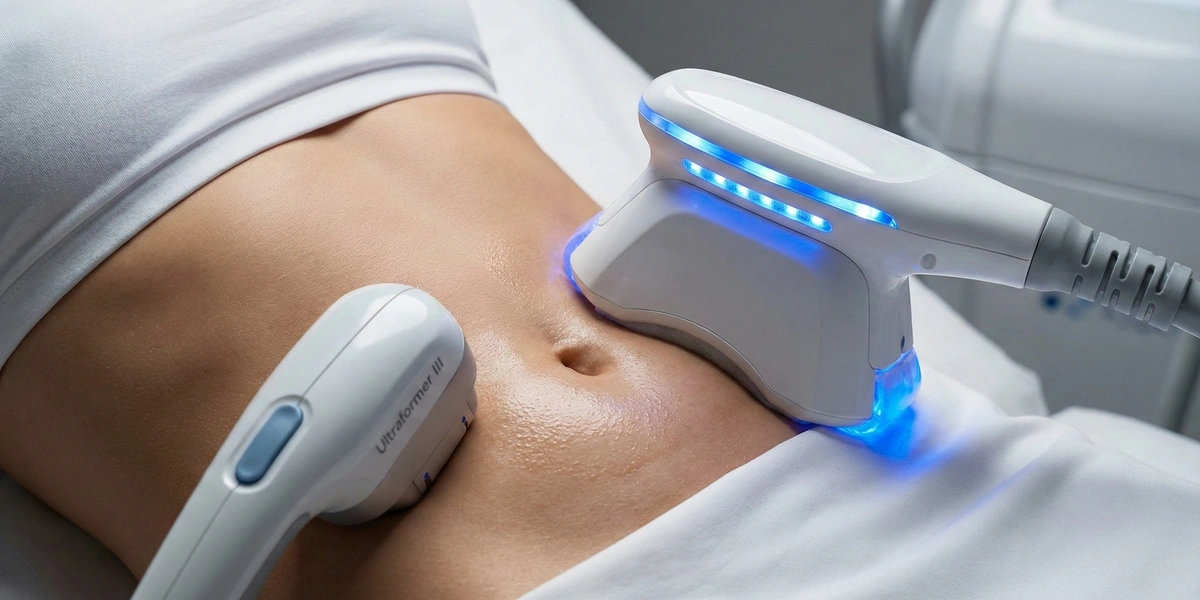 ● Глубокая связка: SMAS-лифтинг (Ultraformer III) работает сфокусированным ультразвуком на уровне мышечно-апоневротической системы (SMAS) — там, где работают пластические хирурги. Ультразвук создает микроскопические зоны коагуляции, заставляя связки сокращаться и подтягивать живот вверх.