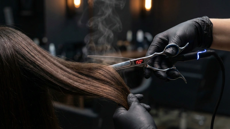 Стрижка горячими ножницами (профессиональная термострижка) меняет саму физиологию процесса. Это не механическое укорачивание, а терапевтическое запечатывание. Лезвия, нагретые до индивидуально подобранной температуры, работают подобно хирургическому инструменту: в момент среза кератин мгновенно оплавляется и застывает. Происходит надежное запаивание кончика, который превращается в гладкую микроскопическую капсулу. Благодаря этому природный гидробаланс и полезные вещества остаются запертыми внутри стержня, а волос приобретает способность к саморегенерации и защите от агрессивной внешней среды.